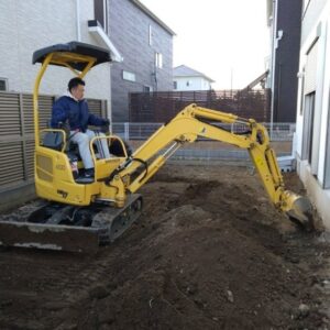 フェンス取り付け工事に続き、人工芝施工のご様子です。